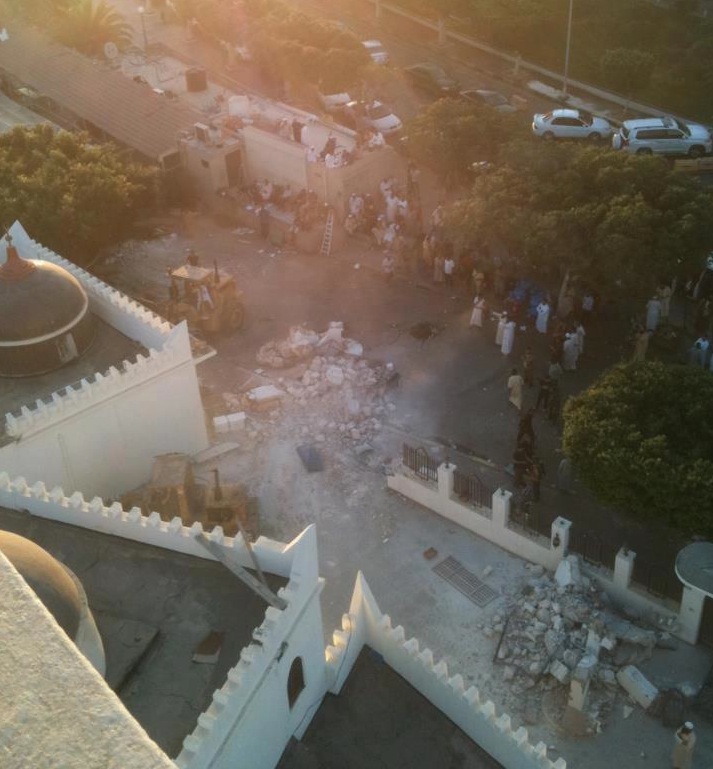 The scene later this morning at the Sidi Sha’ab mosque was startling. There were lots of police, SSC and other officials blocking the road in front while a massive digger was smashing the building. Apparently, this was said to be preventive — to stop it from being attacked further.