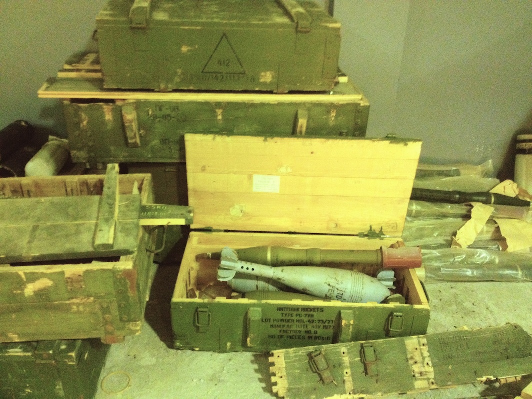 The potential effects of such an environment are of great concern considering the building’s contents. Alongside thousands of canisters of self-propelling artillery munitions and on a floor strewn in places with mortar rounds was a KH-55 Granat missile, the Russian equivalent of the American ‘Tomahawk’. The missile’s lorry-sized launcher sat alongside an identical unarmed vehicle.