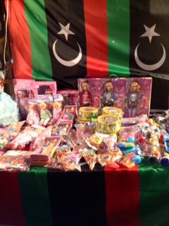 Eid is celebrated for three days and in Libya, a new outfit for every day and new toys for the children is customary. Small stalls have sprung up everywhere, as young men looking to make some quick money sell clothes and inexpensive toys for the occasion.
