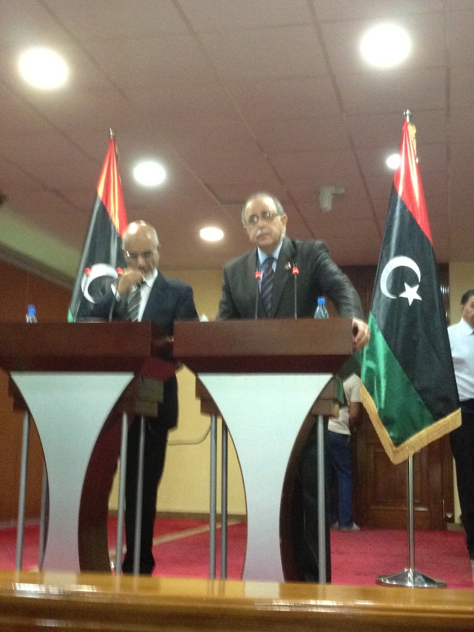 Prime Minister Abdurrahim Al-Kib and Congress President Mohamed Magarief at the press conference today