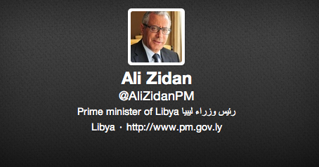 ‘@AliZidanPM’ was established just a few hours after Zidan’s election as prime minister on Sunday night, and quickly began making official-sounding declarations and tweeting at Libya’s great-and-the-good.