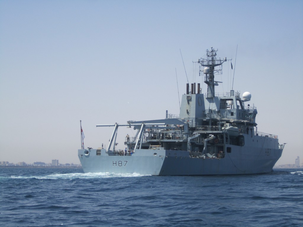 HMS Echo, a vessel designed to collect data for both military and civilian use, has been recording and charting deep waters off the coast of Al Khoms and Tripoli. In shallower waters, Echo’s smaller survey launch has been taking detailed oceanographic data from inside the two ports.