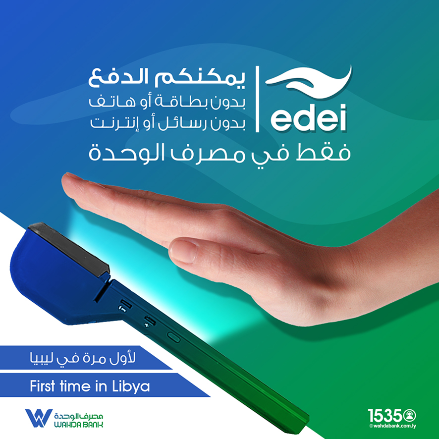 Wahda Bank announced yesterday that it will be introducing soon “Edei”, the first palm-scan payment service in Libya.